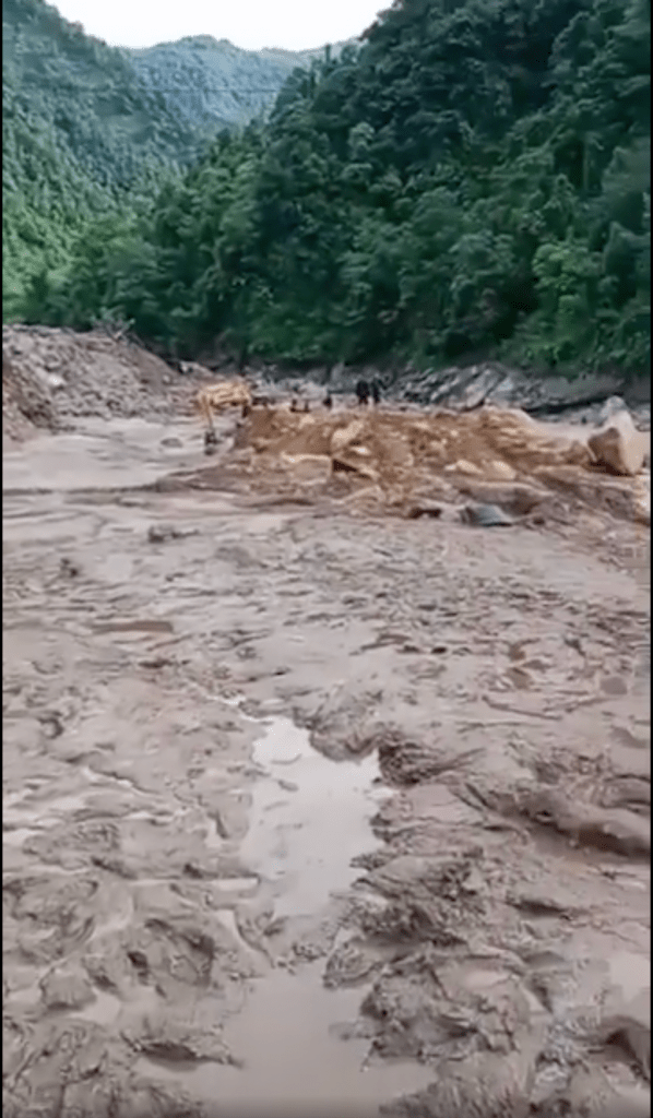 Huge, sudden, short duration floods – due to landslide dam? Dechen Pelden, 28, staying close to the disaster site, heard a rumbling sound and the earth beneath them shake at 7.40 pm on July 20 2023. “I thought we were going to die when I heard the rumbling of the boulders crashing down the valley. I was shocked,” said Dechen Pelden. Dechen said she had never seen a disaster of such magnitude and scale. The flood swept away the entire camp and buried several vehicles including excavators. Tashi Gyeltshen, 30, a resident, said that the weather was clear for three days, and that only on Thursday evening it was raining. “I suspect heavy rainfall at high mountains could be the cause of floods,” he said. “It is the first time we have experienced such a disaster in our village.”[iv]