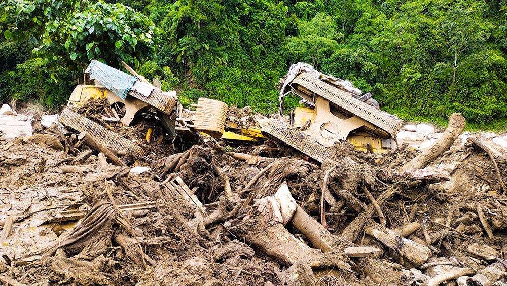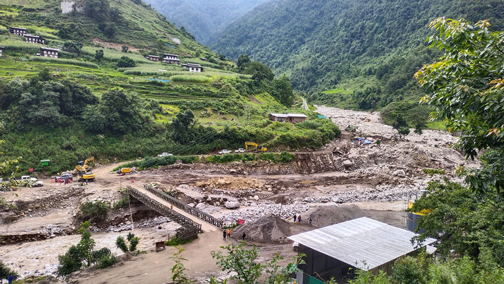 – The flood swept away DGPC’s guest house, which was hired from the Ungar community to serve as the site office, four residential blocks with five units each, a de-suup’s official quarter, three boys hostels, two girls hostels, one dining hall, one kitchen, and two toilets. The camps were set up for officials and workers for the construction of a 32MW powerhouse at the Yungichhu hydropower project. The flash flood also damaged paddy fields and killed 10 cattle.