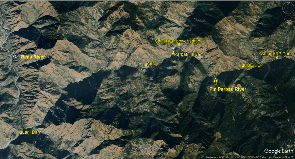The Disaster The heavy rains started lashing the Sainj Valley on July 8, 2023, raising the water levels in Sainj river, which is also known as Pin Parbati river and joins the Beas at Larji dam. Due to constant rains for two days and subsequent flash floods the area was further cut off from power supply, communication and road connectivity which were only resorted after four days. As a result, the reports of flood damages and visual on scale of destruction started coming out in several days after the disaster.