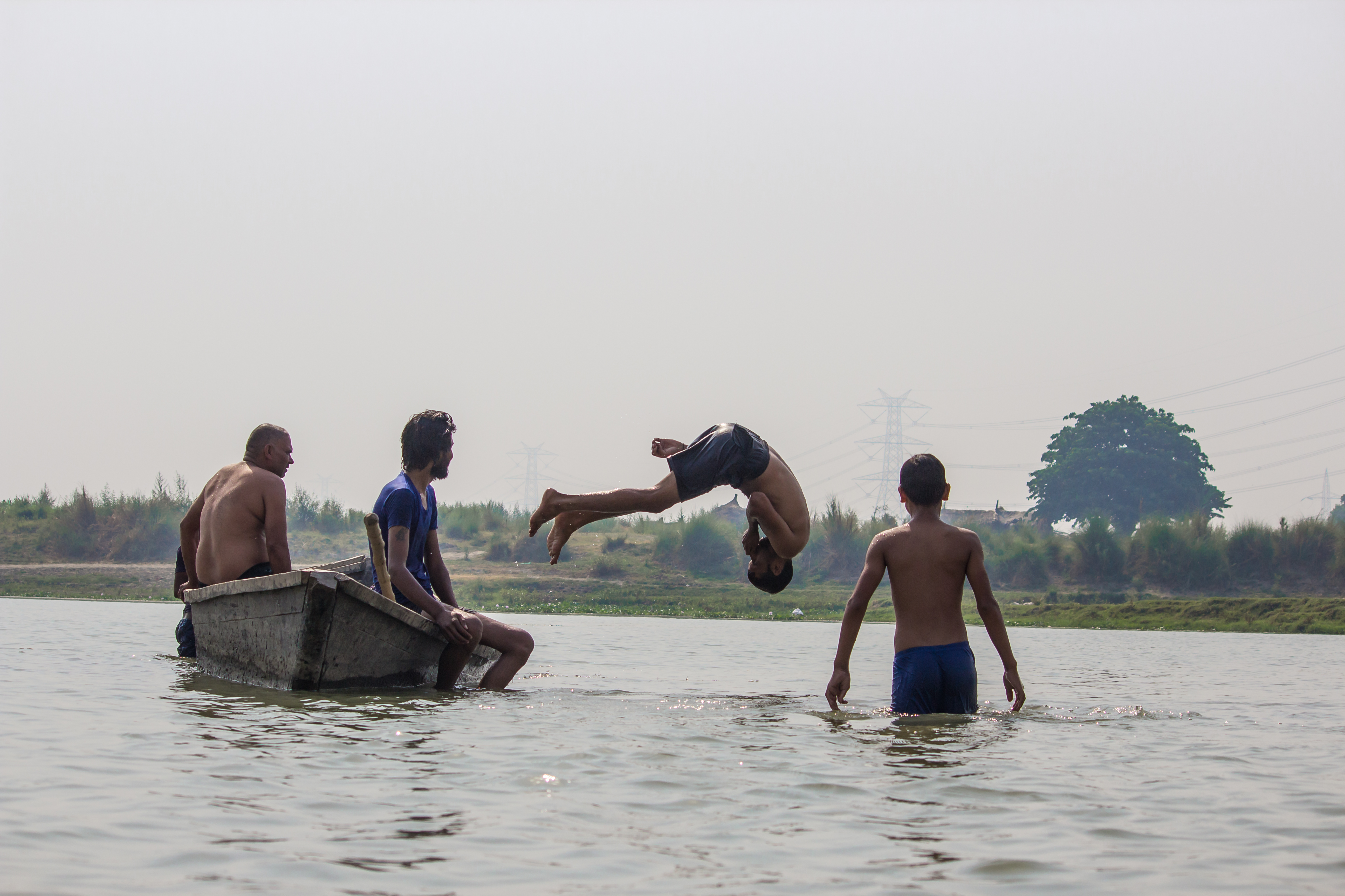 Villagers enjoying bathing in the river at Ram Ghat upstream Wazirabad barage in Nov. 2017. (Image Credit: Yayati Bhardwaj)