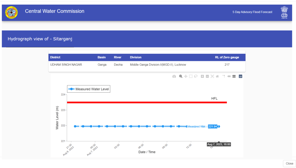 Uttarakhand During 8-9 Aug 2023, several parts of Uttarakhand witnessed heavy rainfall. Severe flash flood incidents were reported from Haldwani, Udham Singh (US) Nagar & Kotdwar. When we visited the CWC’s Flood Forecast website to check the rise in water levels in respective rivers in these areas; we found that hydrographs of several flood monitoring sites not been updated since Aug 6-7.
