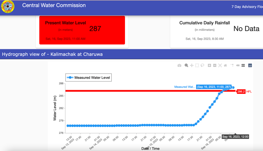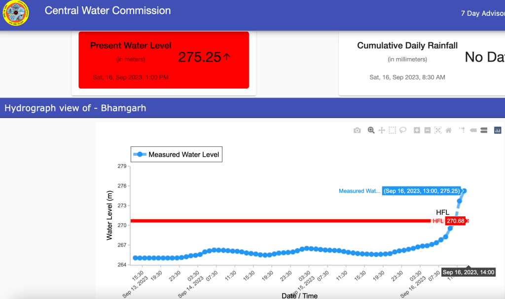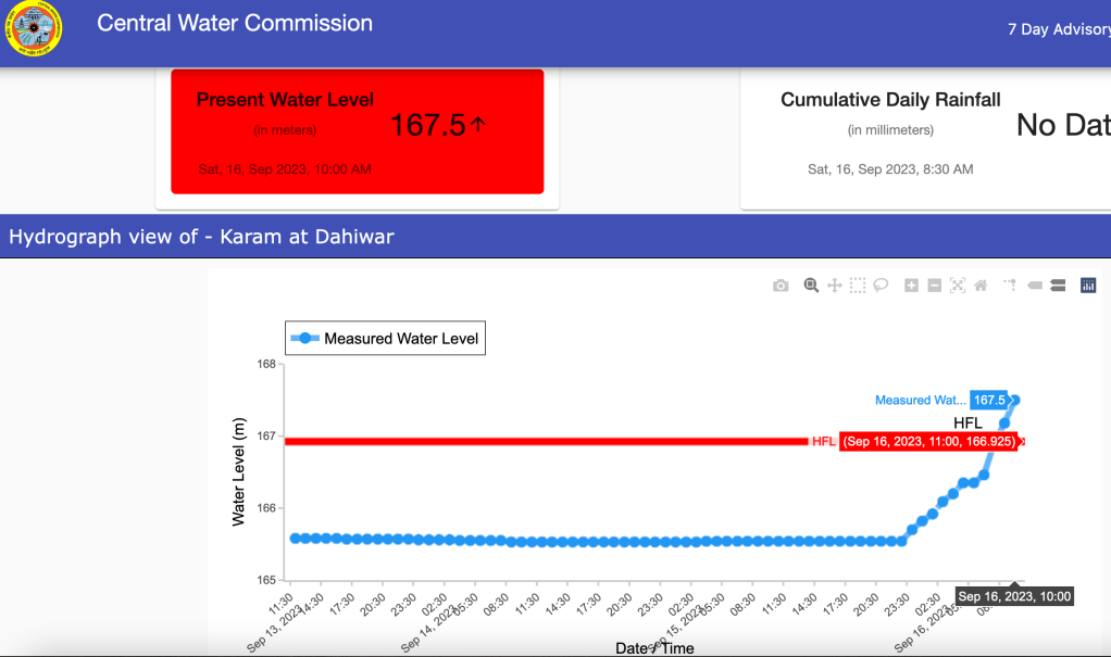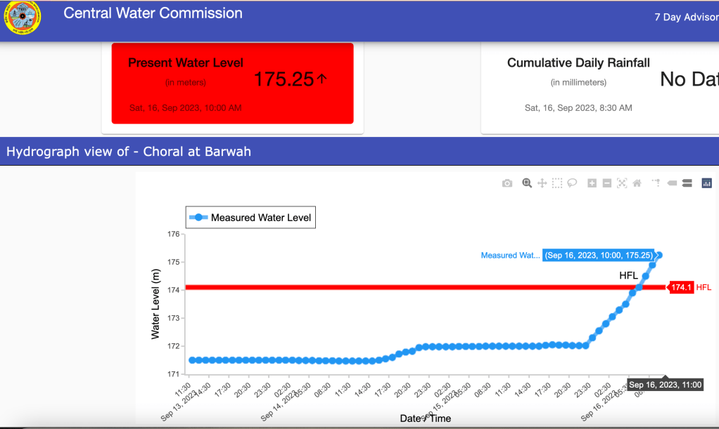 Above screenshot of CWC’s inflow forecast for SSP, done on Sept 16 2023 for Sept 17 2023 and subsequent six days shows how gross under estimation it was against the actual inflow. Actual peak inflow was 63950 cumecs as against the forecast of less than 33000 cumecs. Who will hold CWC accountable for such grossly wrong forecasts?