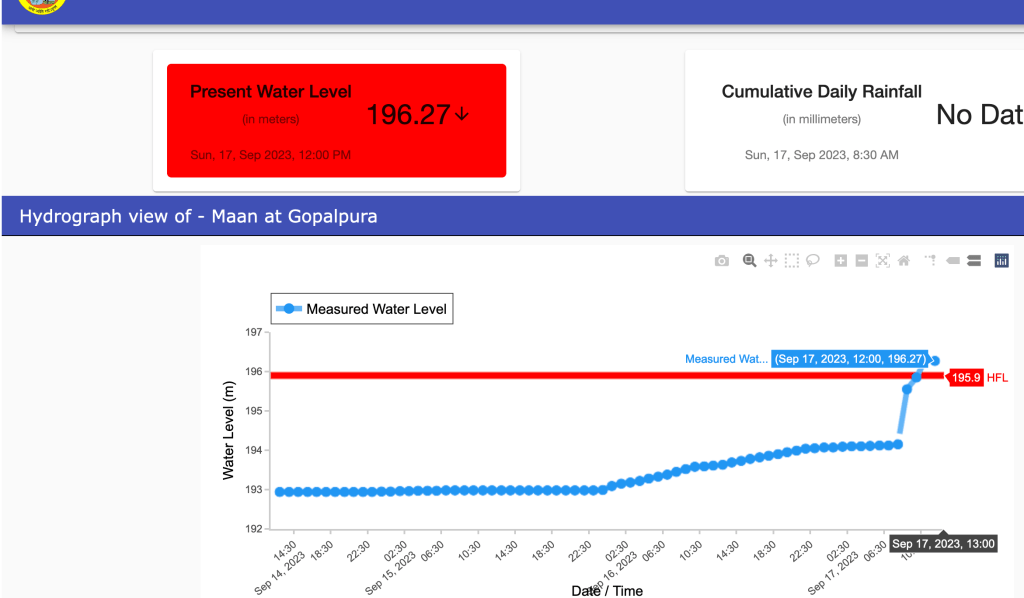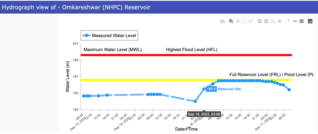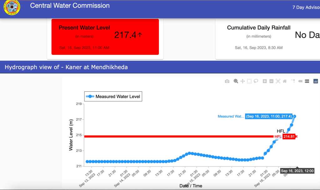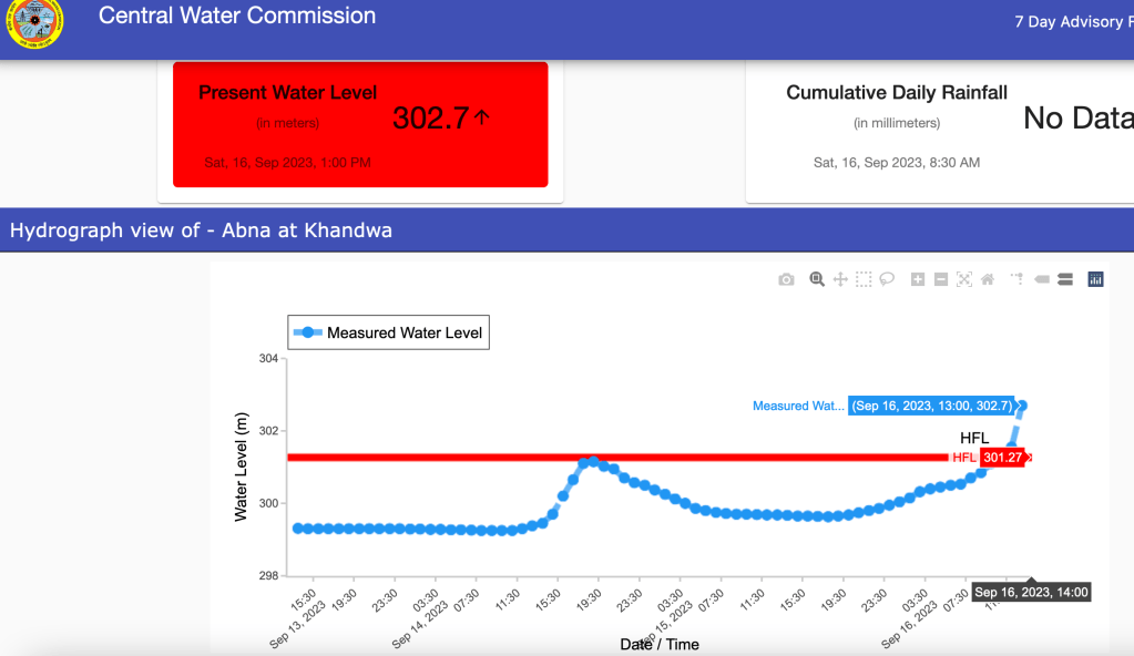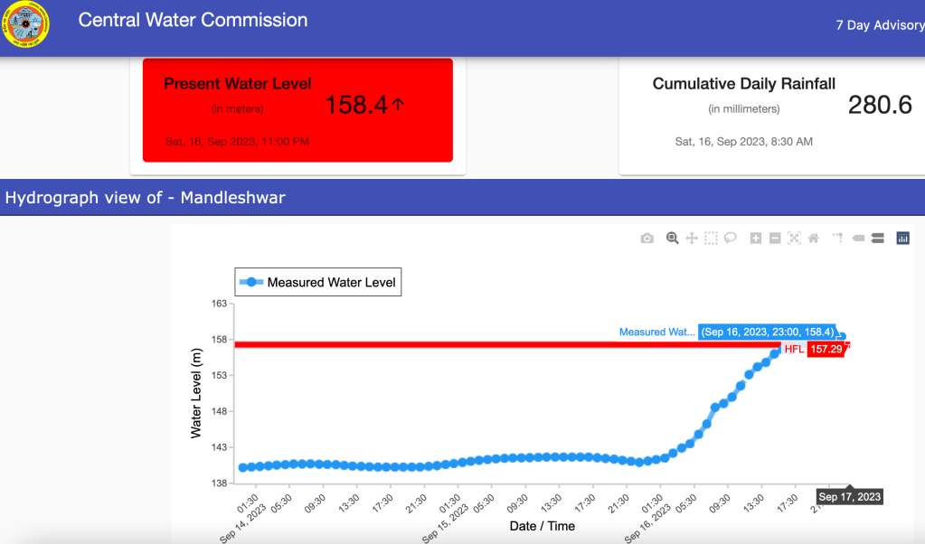 The district wise rainfall reported by IMD for the 24 hrs ending at 0830 hrs on 16 Sept 2023 was much higher: Khargone (144.6 mm), Alirajpur (108.2 mm), Dewas (149.7 mm), Dhar (80.4 mm), Harda (205.2 mm), Jhabua (92.4 mm), Khandwa (147.6 mm) and Narmadapuram (131.7 mm), among others. Since CWC and SSP authorities get hourly updates on rainfall in the catchment, they could have started inflow forecasting and increased releases within the carrying capacity of the downstream river even before IMD reported these 24 hrs figures at 0830 hrs.