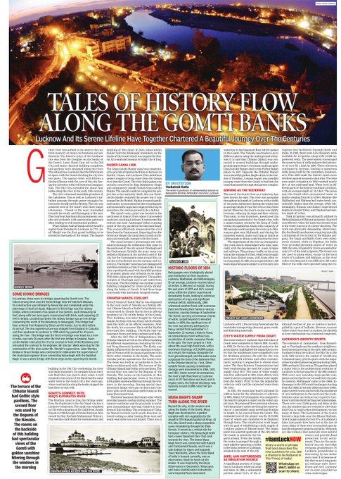 Gomti; Lucknow Tales of history flow along Gomti banks The Gomti river in Lucknow holds the cultural history of the city, with many significant buildings and gardens designed along its banks. The river has connections to Iraq’s Euphrates river and was once used as a waterway for transportation.