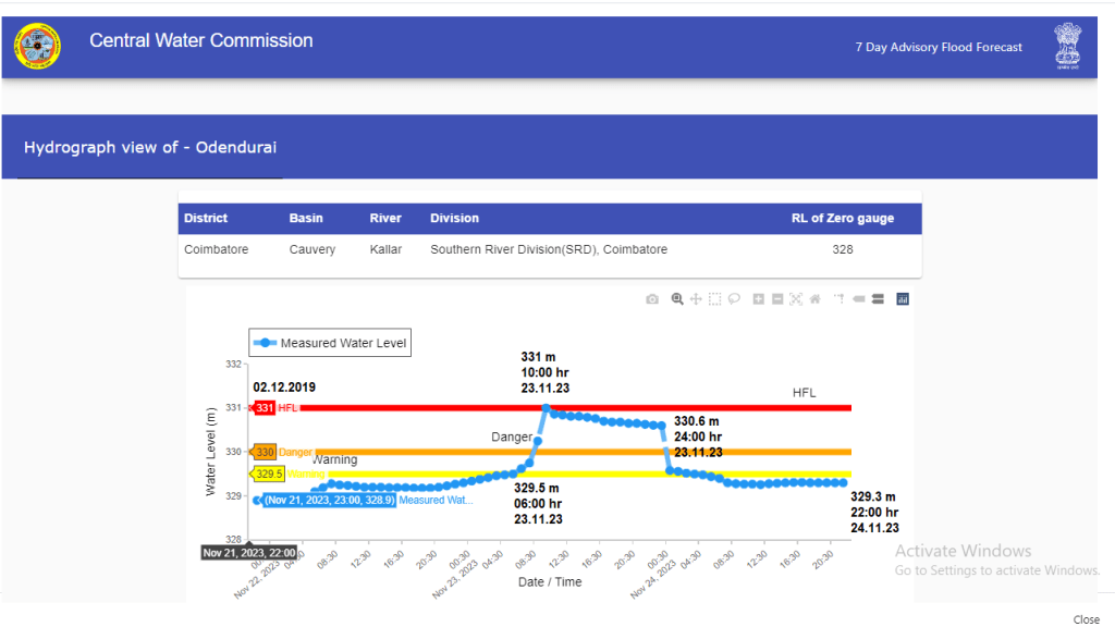 Two of these sites namely Monnavedu and Kallidaikurichhi are part of EFR between Pennar and Kanyakumari basin while Odendurai site is part of Cauvery basin where the Kallar river has touched the HFL on November 23, 2023. The details of these sites is given in table below.