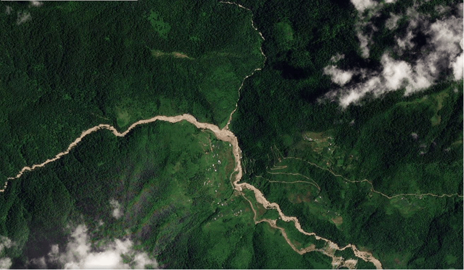 Dave Petley on Ungar landslide This is clearly a very steep, dissected landscape, with multiple small tributaries feeding into the main channel. This is a classic case for landscape for small slips combining to create a channelised debris flow.