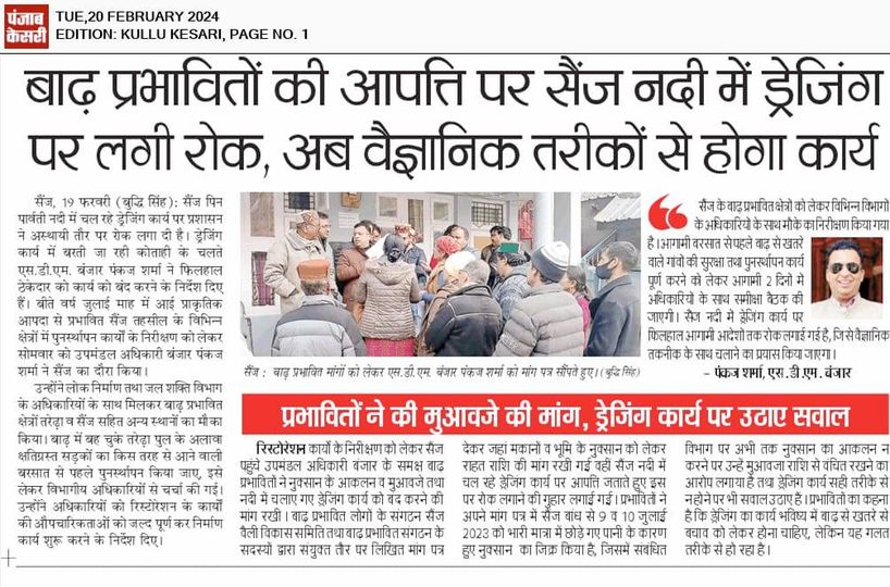 SDM of Sainj Tehsil has stopped sand mining in Sainj river, on appeal by flood affected people and have said it will be done only in scientific way.