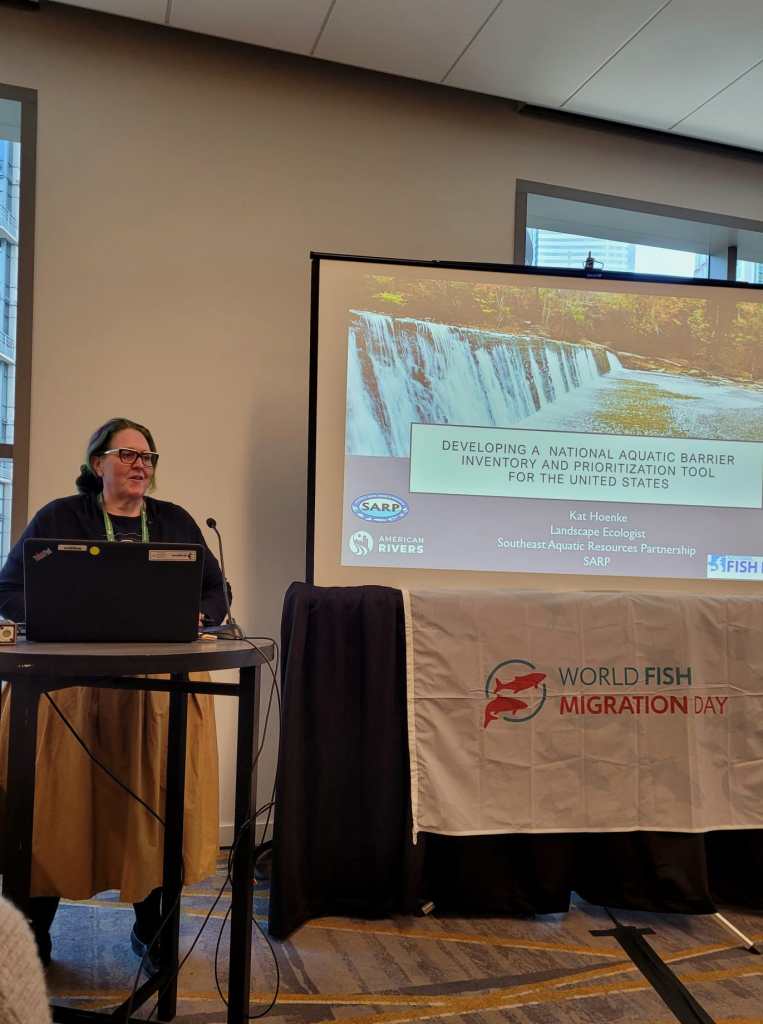 This was followed by an interesting presentation by Serena McClain, Senior Director of American Rivers. She presented on behalf of her colleague Kathleen Hoenke from SouthEast Aquatic Resource Partnership about ‘Developing a National Barrier Inventory and prioritization tools for United States’. Aquatic barriers include more than 5 hundred thousand dams and over sixty hundred thousand road crossings. In the Southeast US, over the past 10 years, this inventory has contributed to the remediation of 80 road crossing barriers and 20 dam removals, a positive example of success as the inventory and tool expands into the rest of the United States. She strongly advocated for a bipartisan law to protect Aquatic species and habitats.