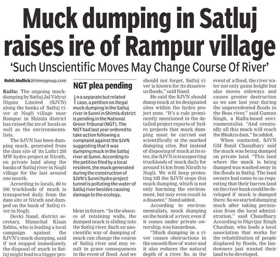 Himachal Pradesh People are angry as SJVN is unscientifically dumping much from hydro projects.
