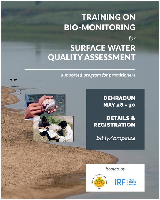 People’s Science Institute and India River Forum are co-hosting a two days training and bio-monitoring program for surface water quality assessment for practitioners from 28th – 30th May, 2024 in Dehradun.