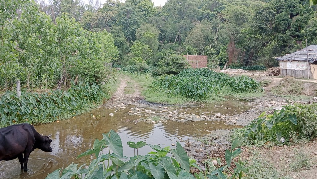 There are few Van Gurjar families rearing cattle and doing farming as crop sharer. The subsurface water coming to surface by a stream is source of potable water for these families.