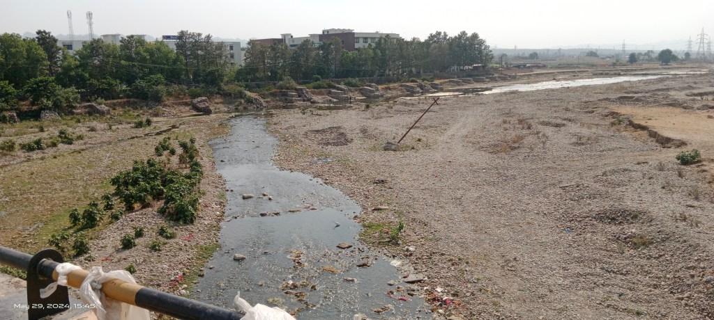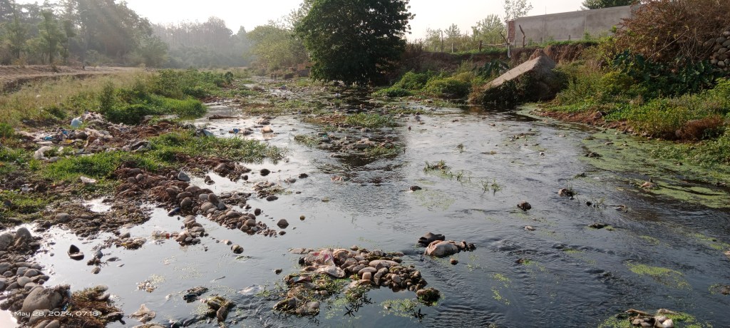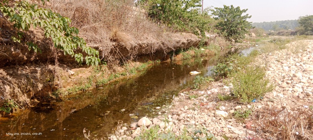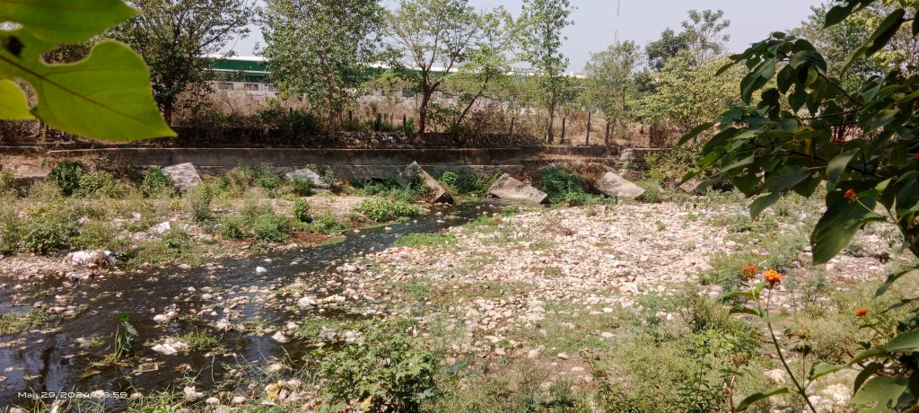 The polluted water quantum in the river gets reduced here. The water quality also appears slightly improving due to multiple factors including impact of running through gravel bed, vegetation cover and gradient.