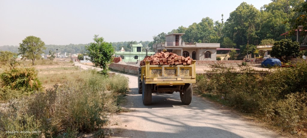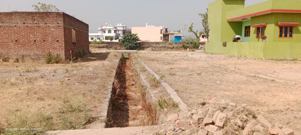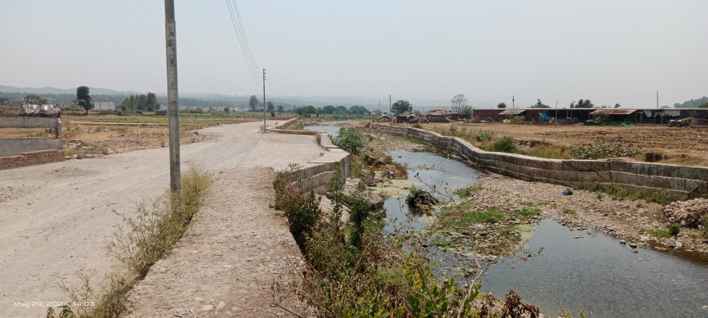 Opposite Budowala plotting and road construction is taking place along the Asan. There are property right related dispute going on in the area.