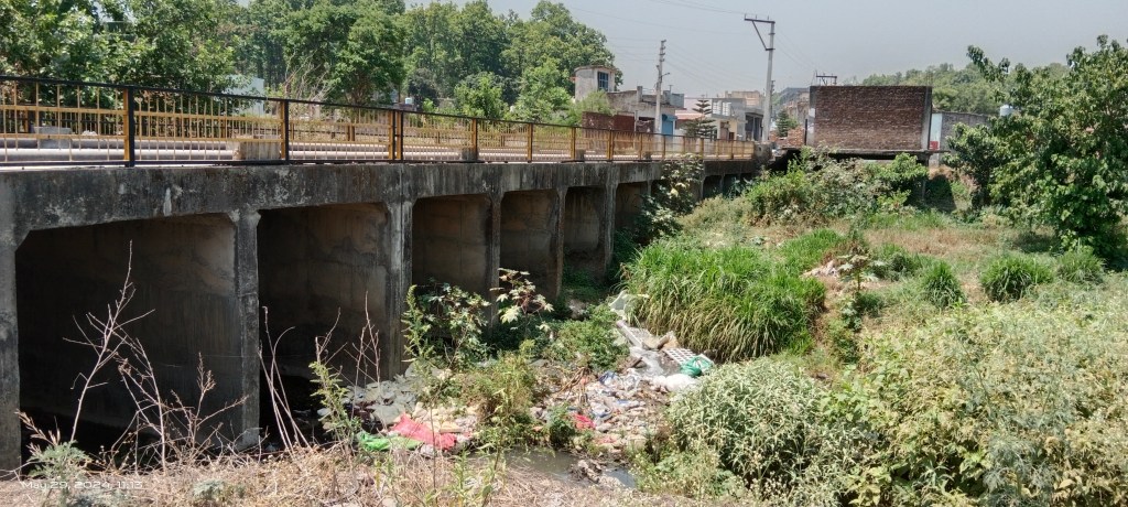 Asan river at Polion Nathuwala Bridge: Hardly 3 km downstream the Sumeru Enclave, the Asan River starts trickling down with reduced flow.