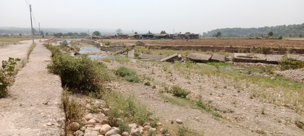 A small canal used to bring Asan river waters for irrigation and even to run a water mill (Gharat) there. But over the past decade, the farming land is being used for building houses in unplanned manner leading to decline in farming and sericulture. The canal is also running dry.