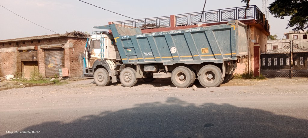 There were dumpers, trucks and JCBs machine parked outside most of the houses in the village along with heaps of riverbed materials. Apparently, the machineries were being used for riverbed mining during the night hours.