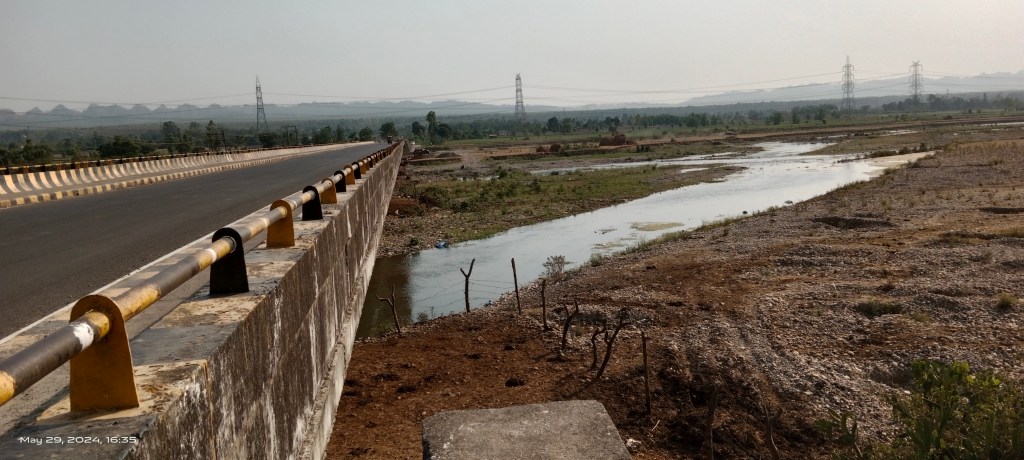 There were dumps of freshly mined riverbed mineral close to the bridge. The cattle, local people had taken shelter beneath the bridge to escape intense heat spell.