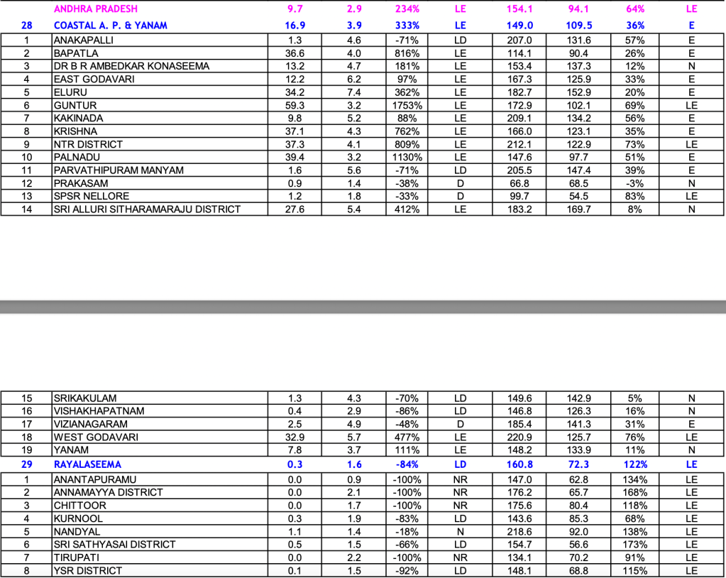 | TamilNadu | LE | +116 | 38 | 0 | 0 | 0 | 3 | 6 | 29 |