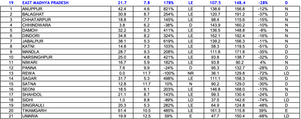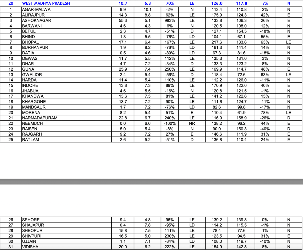 | Madhya Pr | N | -10 | 52 | 0 | 3 | 11 | 25 | 10 | 3 |