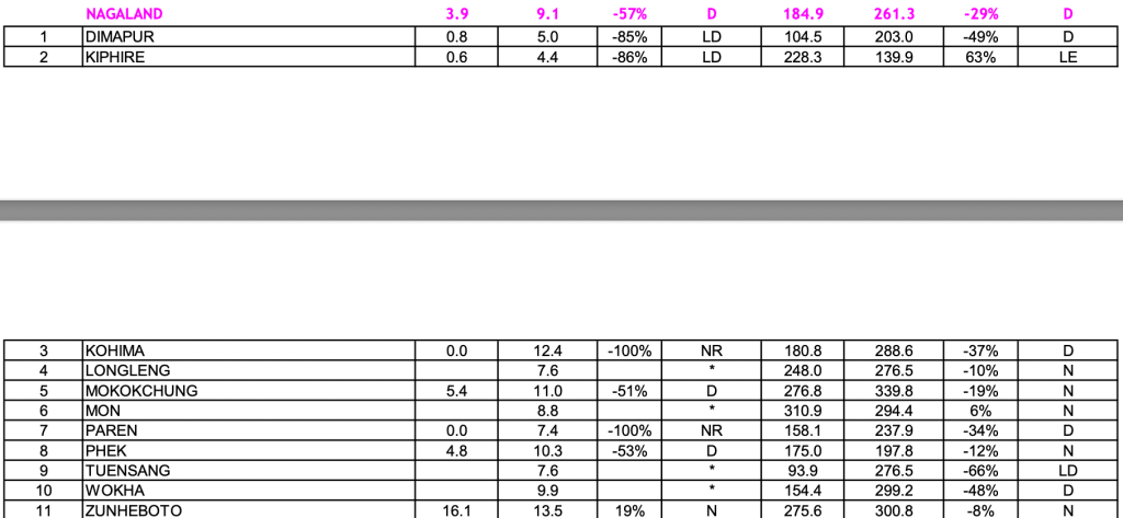 | Nagaland | D | -29 | 11 | 0 | 1 | 4 | 5 | 0 | 1 |