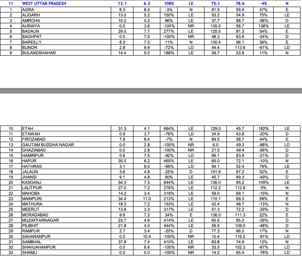 | Uttar Pr. | D | -34 | 75 | 1 | 26 | 24 | 9 | 9 | 6 |