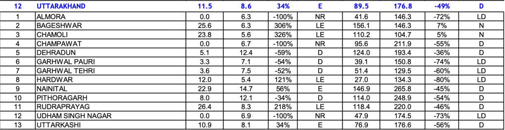 | Utt. Khand | D | -49 | 13 | 0 | 5 | 6 | 2 | 0 | 0 |