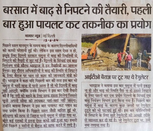 Minister claims about some pilot cut technique that will help deal with Yamuna floods this time. Not clear what he means by that. He also says the ITO barrage gates have been maintained/ repaired.