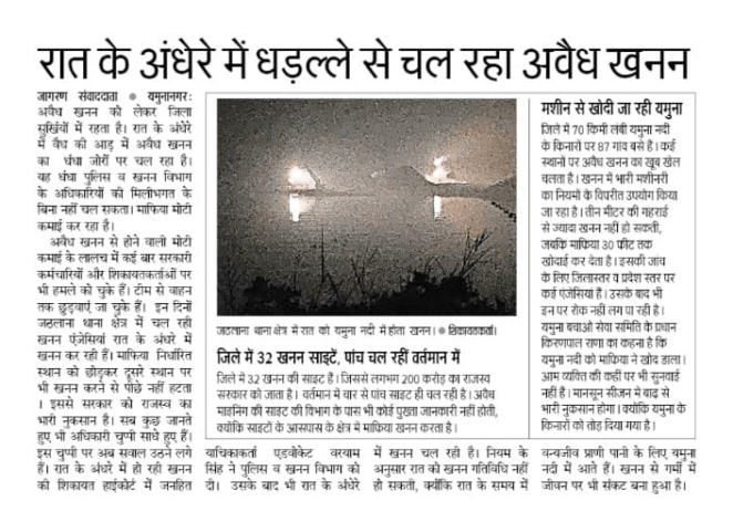 Haryana In violation of norms miners indulging in mechanized instream mining in Yamuna river at Jathlana, Yamuna Nagar in late night hours. (Dainik Jagran 19 June 2026)