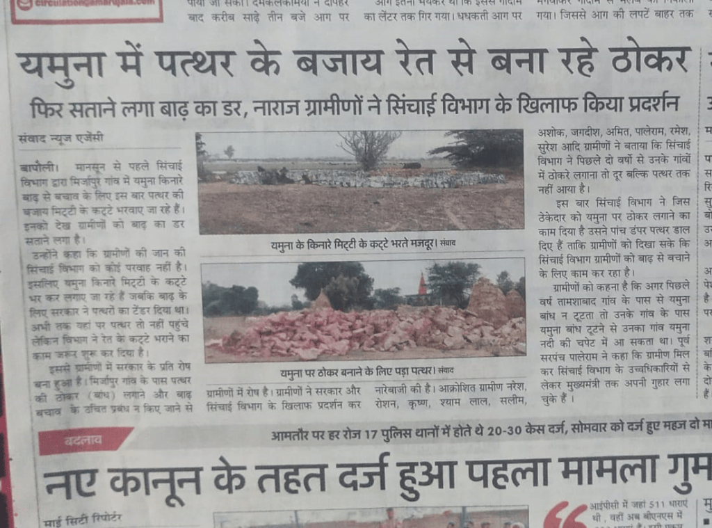 The department has another worry on its hands — plateaus have formed on the riverbed because of the dumping of debris and discarded construction material. An official said agencies working on the Regional Rapid Transit System (between Sarai Kale Khan and Meerut) and Barapullah Flyover extension have left behind sheet piles, pile caps, and debris that can’t be eroded by water, which means the movement of water through the barrage slows down. https://indianexpress.com/article/cities/delhi/building-new-bunds-clearing-silt-and-debris-how-delhi-is-making-yamuna-banks-monsoon-ready-9378963/ (8 June 2024)