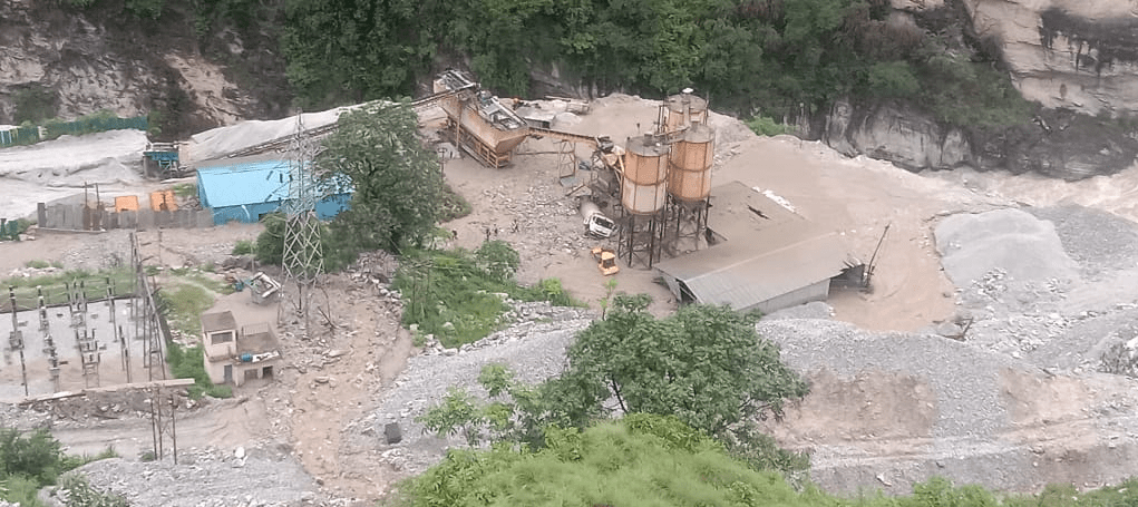 The video shows flashflood scars all around the batching plant site. (“बैचिंग प्लांट तो गया….आयल के ड्रम वैगरह सब बह चुके…यहाँ पर जो रिपोर्टिंग ऑफिस था उसके अंदर मलबा भरा है…”) “Batching plant is gone… all oil drums are washed away, the cabin of reporting office is filled with muck”, mentions the about two minute long video probably shot in the morning of July 16, 2024.