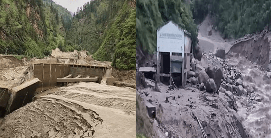 (Feature Image: Mahan III HEP powerhouse in flooded condition due to overflowing of dam. Image Source: Dainik Bhaskar)
