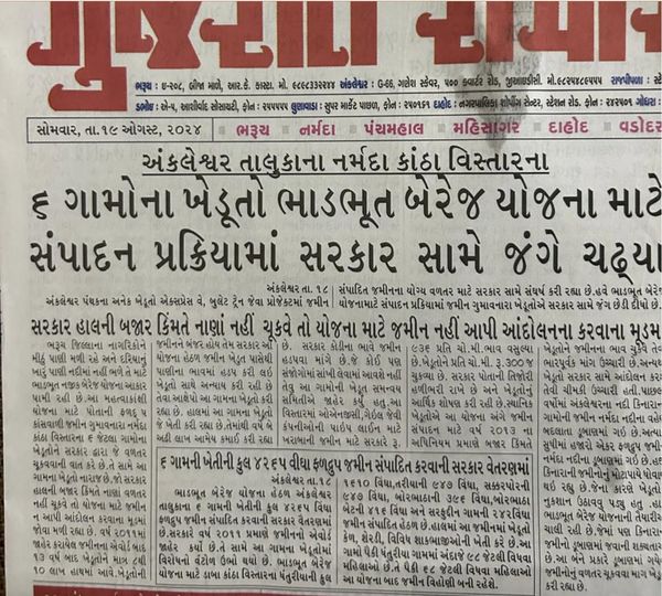 Gujarat People of villages in Ankaleshwar in Bharuch dist of Gujarat are demanding proper compensation for the land to be acquired for the under construction Bhadbhut barrage on Narmada river.