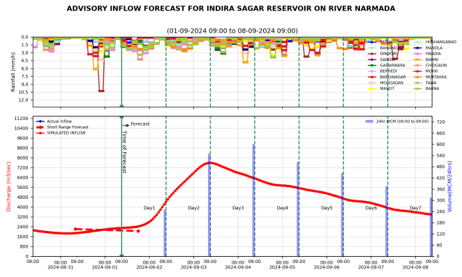 Telangana Water released to Nagarjuna Sagar The Srisailam reservoir on the Krishna river is currently experiencing substantial inflows, prompting the irrigation department to lift the radial crest gates up to 10 feet and release water to the downstream Nagarjuna Sagar Dam. As of the latest data, the inflows to Srisailam Reservoir stand at 2,13,624 cusecs, while the outflows are at 1,22,876 cusecs. The reservoir has a total storage capacity of 885 feet. The officials have also begun power generation at the left and right hydropower stations of the reservoir. https://www.siasat.com/srisailam-reservoir-experiences-high-inflows-water-released-to-nagarjuna-sagar-3086051/ (28 Aug. 2024)