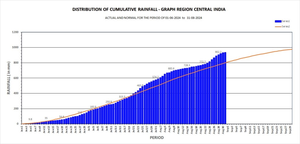 The Central India ended the June Aug 2024 period with significant surplus rainfall.