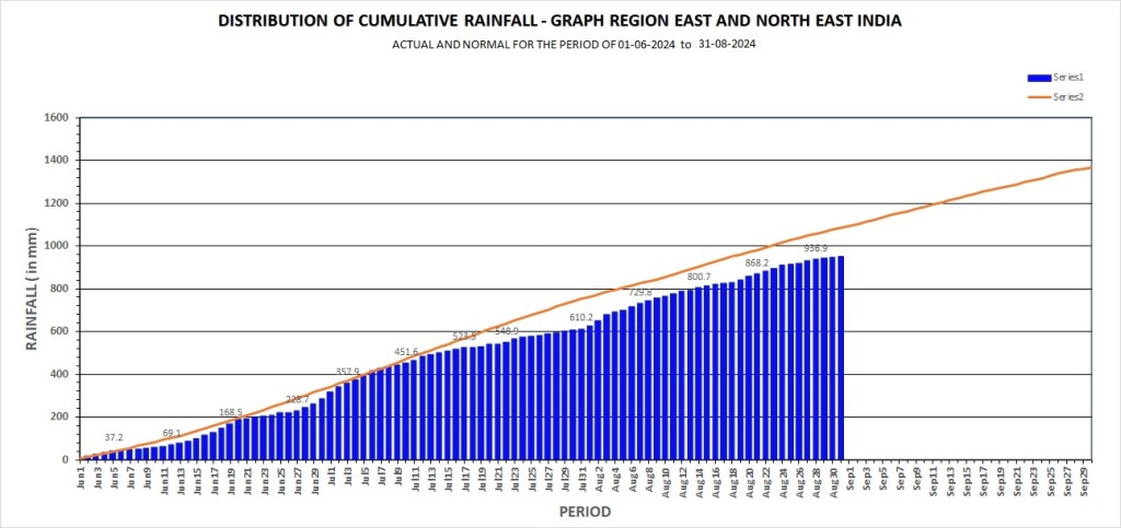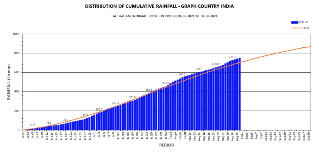 Region wise rainfall graphs The bar chart below is for the National Rainfall figure till Aug 31 2024.