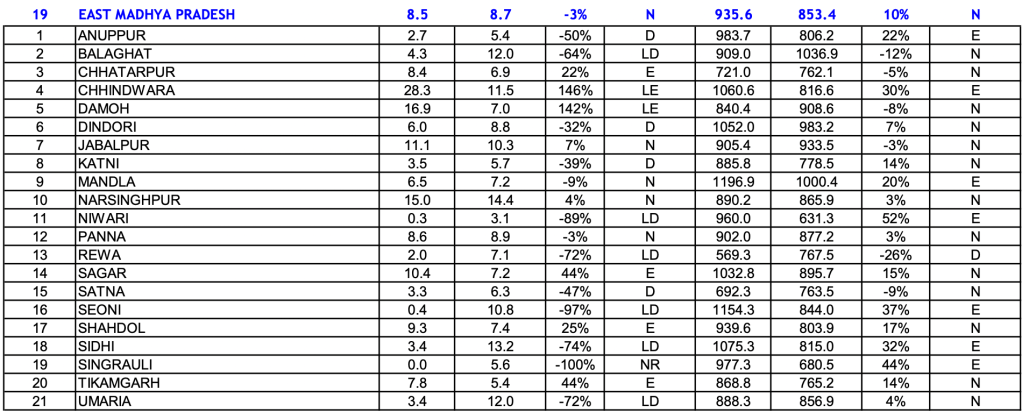 DISTRICT WISE STATE WISE RAINFALL IMD also provides a map with all the district boundaries and rainfall category as we can see above.