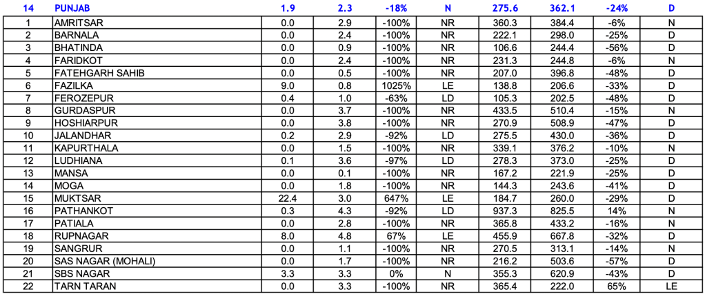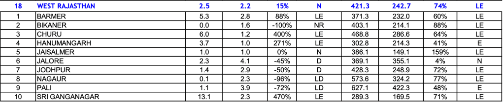 The North West India ended the three months period of June Aug 2024 with minor surplus, similar to the situation in 2023.