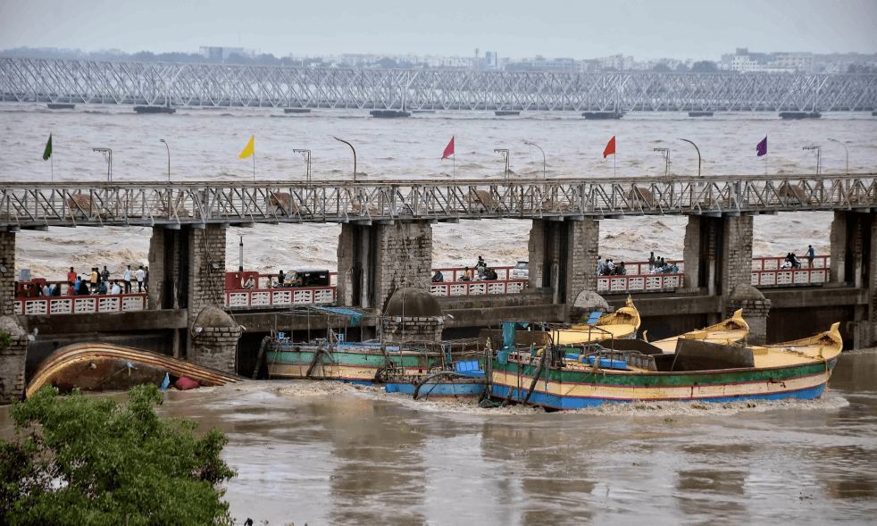 (Feature Image: Sand boats hit Prakasam Barrage gate no 69 while irrigation officials release 11.24 lakhs cusecs of flood water in Vijayawada on Monday (Sept. 02, 2024). Image Source: Deccan Chronicle)
