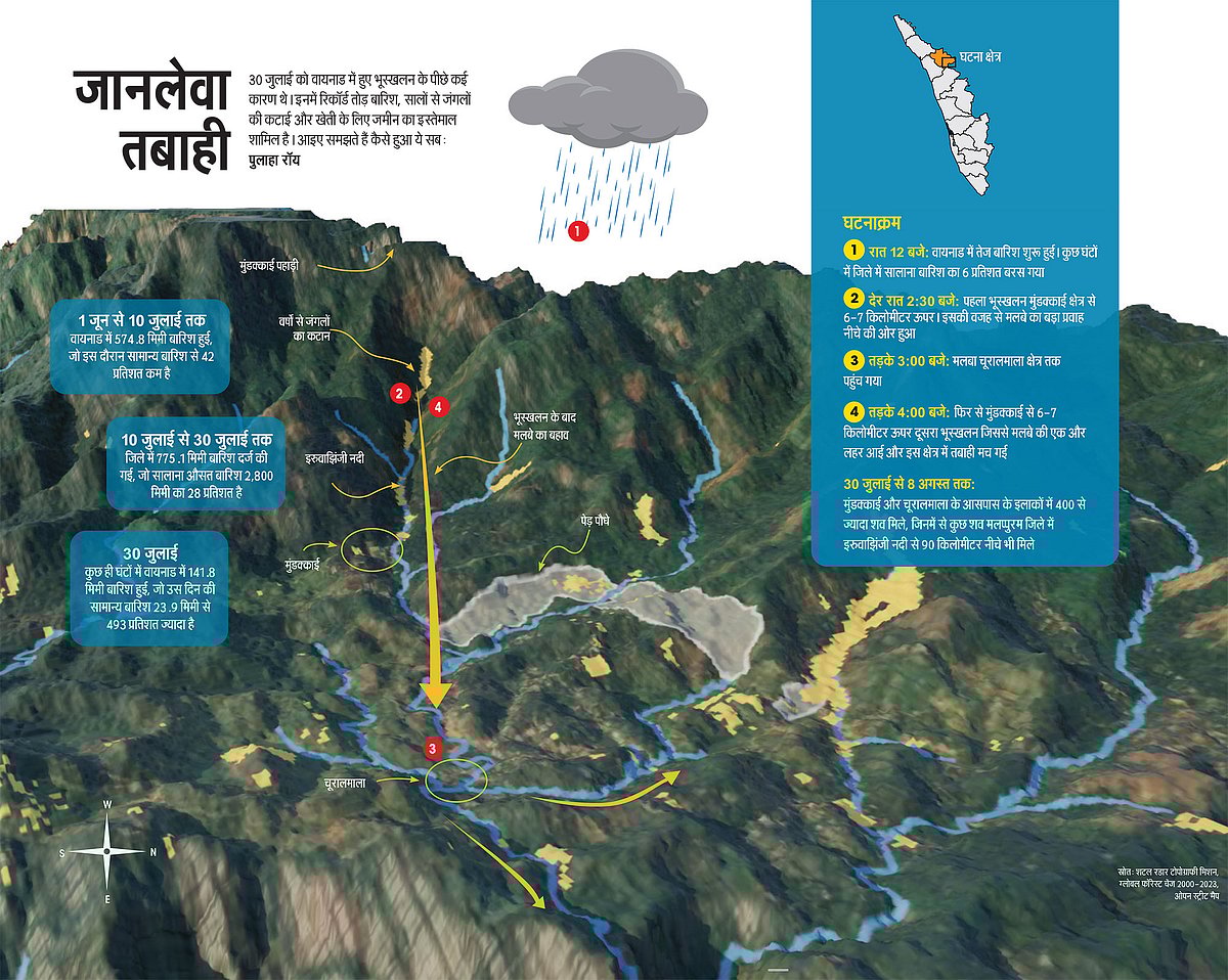 वायनाड में त्रासदी आने से मुश्किल से दो हफ्ते पहले 19 जुलाई को भारत ने अपना पहला भूस्खलन ईडब्ल्यूएस शुरू किया था। भारतीय भूवैज्ञानिक सर्वेक्षण (जीएसआई) के तहत स्थापित एनएलएफसी ने 23 जुलाई से तीन क्षेत्रों- पश्चिम बंगाल के कालिम्पोंग और दार्जिलिंग जिलों के अलावा तमिलनाडु के नीलगिरी जिले के लिए दैनिक पूर्वानुमान बुलेटिन जारी करना शुरू कर दिया है। यह हिमाचल प्रदेश, उत्तराखंड, सिक्किम, पश्चिम बंगाल, तमिलनाडु और केरल के 13 अन्य भूस्खलन संभावित जिलों के लिए भी पूर्वानुमान बुलेटिन जारी कर रहा है, लेकिन प्रयोग के तौर पर। https://hindi.downtoearth.org.in/natural-disasters/landslide-forecast-how-far-has-the-governments-preparation-reached (16 Sept. 2024)