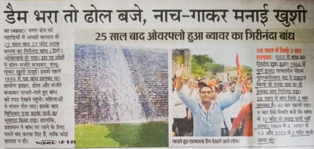 Rajasthan Giri Nanda Dam in Bar (Beawar) is full this year, only second time in its 58 years of existence. Last time it was full was in 1999.
