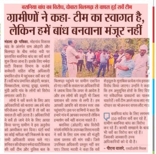 Madhya Pradesh People in Upper Narmada basin in MP are opposing survey for the proposed Basania Dam.