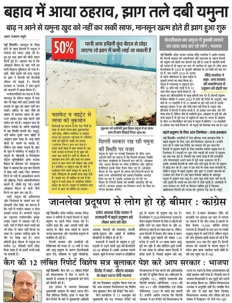 Officials distorting pollution data Despite a recent report by the DPCC claiming that dissolved phosphate levels in the treated water entering the Yamuna River are within permissible limits, images of froth on the river’s surface ahead of Chhath Puja have caused alarm among residents of the national capital. Experts have expressed doubts, suggesting that the visible pollution contradicts the report’s findings. https://thepatriot.in/reports/foam-and-fear-are-officials-distorting-yamuna-pollution-data-59891 (24 Oct. 2024)