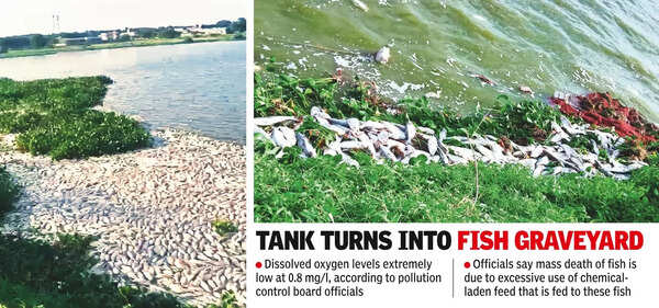 “Recently, eight lakh fish fingerlings were released in the Chitkul tank for cultivation. If we do it again now, it will need another 20 lakh fingerlings and the culture season will be over by the time these fish are ready for fishing,” explained N Ramaiah, a fisherman. https://timesofindia.indiatimes.com/city/hyderabad/10-tonnes-of-dead-fish-found-in-chitkul-tank-locals-blame-effluents/articleshow/111325119.cms (28 June 2024)