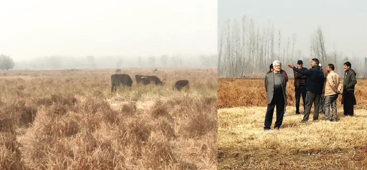 Although the Wildlife Department has begun efforts to reclaim encroached areas on the northern side of the wetland by erecting boundary pillars, the process has been agonizingly slow, taking over 15 years of legal battles in the courts. The EPG team also identified failures in water management as a key factor behind the wetland’s deterioration. The Sukhnag Nallah, which could supply water to the wetland, remains disconnected due to a closed MS iron gate at the offtake point in Rakh Kawoosa village.