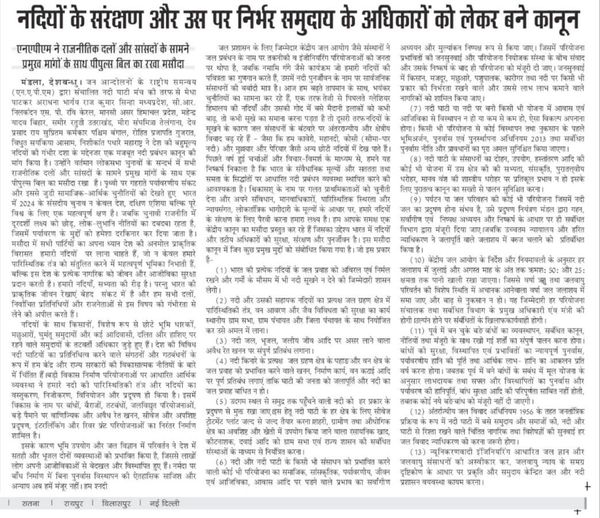 The committee claims that the former CM had said in writing in the Assembly in 2016 that many dams including Basaniya were cancelled. Now there is a deep conspiracy of private companies and bureaucrats behind restarting these dams. He warned that the construction of the dam will cause irreversible damage to the environment, biodiversity and aquatic life of the area. The members present in the meeting appealed to the govt to cancel the dam keeping in mind the demand of the tribal society. Also, it was decided that on the occasion of World River Day on 22 Sep, a resolution conference will be organized to save Narmada. https://www.deshgaon.com/voices/dam-affected-people-rejected-cm-mohan-yadavs-compensation-proposal-adamant-on-the-demand-of-cancellation-of-dam/ (22 Aug. 2024)