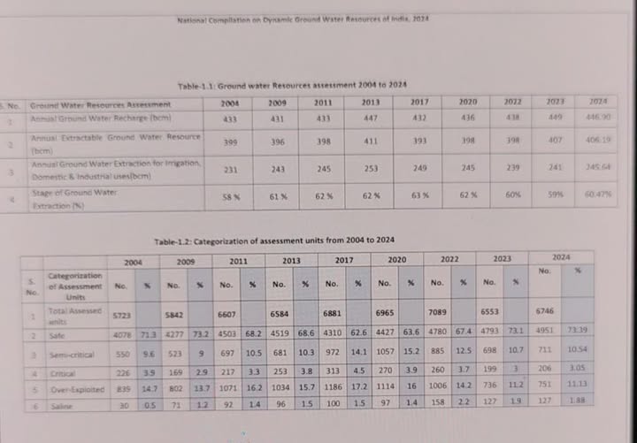Sharing this data table (published in CGWB report) on nine ground water assessments done from 2004 to 2024.