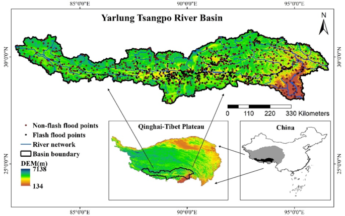 Study Interpretable flash flood susceptibility mapping in YTRB Abstract: –Flash flood susceptibility mapping is essential for identifying areas prone to flooding events and aiding decision-makers in formulating effective prevention measures. This study aims to evaluate the flash flood susceptibility in the Yarlung Tsangpo River Basin (YTRB) using multiple machine learning (ML) models facilitated by the H2O automated ML platform. The best-performing model was used to generate a flash flood susceptibility map, and its interpretability was analyzed using the Shapley Additive Explanations (SHAP) tree interpretation method. The results revealed that the top four models, including both single and ensemble models, demonstrated high accuracy in the tests.