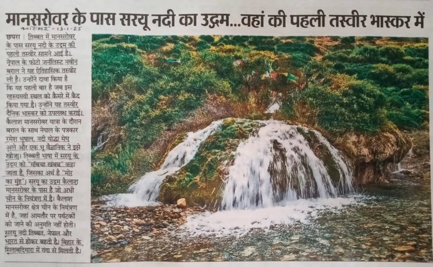 Report This report claims that this is first ever photo of origin of the Saryu River (a tributary of Ganga), near Kailash Mansarovar in Tibet. In Tibetan language this place’s name means mouth of Peacock. (Dainik Bhaskar 13 Jan. 2025)