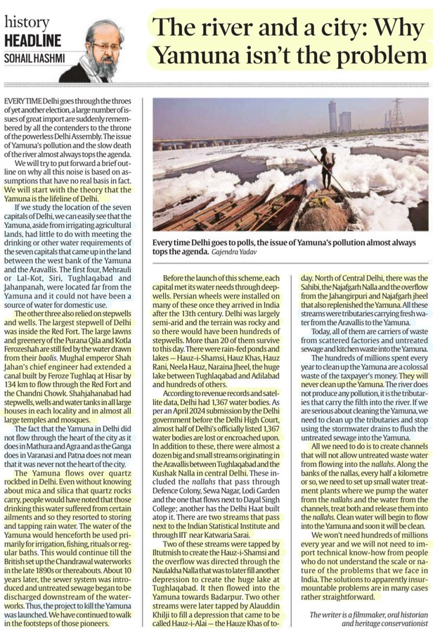 Delhi’s lifeline isn’t what you think Historian Sohail Hashmi provides correct historical perspective about Yamuna. His suggestion that it is tributaries and not Yamuna that are the problem is right, but it is tributaries that make the river. https://indianexpress.com/article/opinion/columns/yamuna-pollution-myth-delhi-lifeline-9819108/ (16 Feb. 2025)