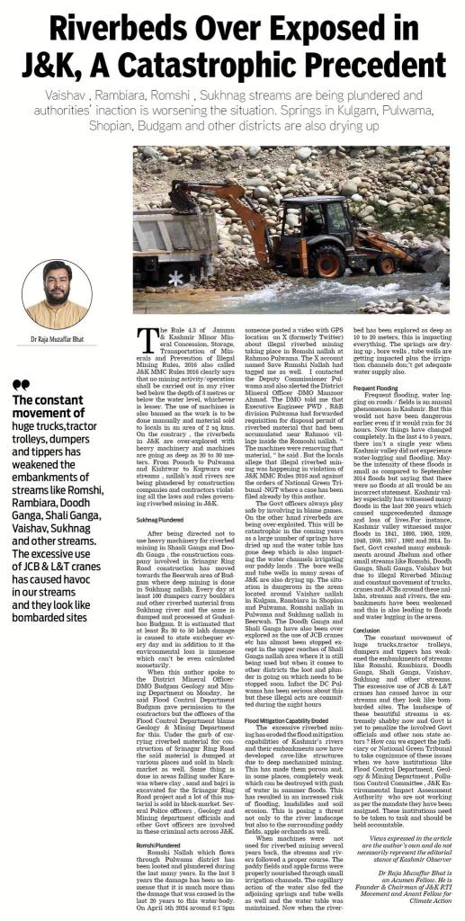 (Feature Image: Taken from a report titled “Mining in Nallah Romeshi: DMO Pulwama submits report” by Rising Kashmir, 04 Dec. 2024)